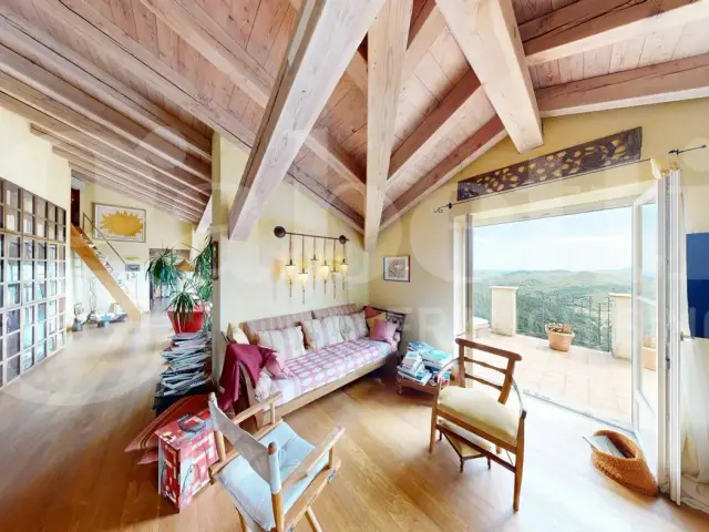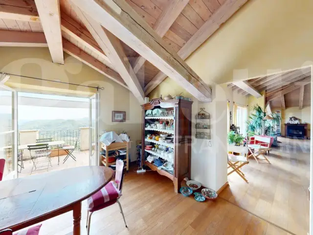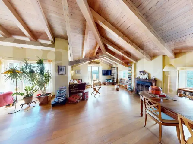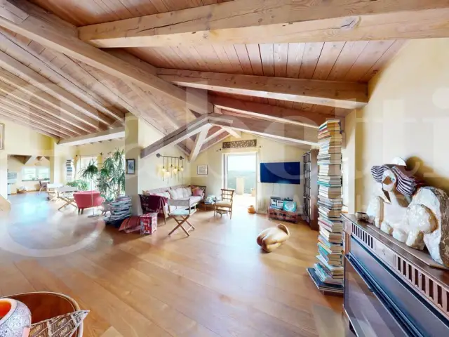 Nella tranquillità delle colline, proponiamo bellissimo attico con terrazze panoramiche da cui si gode di un incantevole panorama che arriva sino al mare. L'immobile è stato recentemente ristrutturato, creando un suggestivo contrasto tra le travi in legno e gli elementi di arredo contemporanei. L'appartamento si trova all'ultimo piano di una casa storica ed è per questa ragione molto luminoso e con una vista mozzafiato. Sin dall'ingresso si è subito avvolti in un'atmosfera calda e accogliente, grazie al pregiato parquet e all'arredamento che si armonizza perfettamente con i vari ambienti: dall'ampia zona giorno possiamo raggiungere le due camere da letto, lo studio, i due bagni oppure la caratteristica cucina. Su un lato troviamo la scala in legno che permette di raggiungere un grazioso soppalco, ideale per trascorrere momenti di relax. L'immobile è dotato di un moderno riscaldamento a pavimento, che permette di avere una temperatura ideale in tutti gli ambienti. Alla proprietà sono abbinati due posti auto coperti e una comoda cantina. Inoltre, un ampio giardino e una bellissima piscina sono a disposizione per rilassarsi al meglio immersi nella natura.Contattaci per visionare l'immobile!