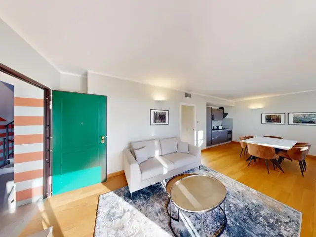 L’immobile, completamente arredato con gusto e grande attenzione ai dettagli, è pronto per essere abitato. Dotato di citofono e servizio di portineria, garantisce privacy ed esclusività. Il sistema di riscaldamento e climatizzazione assicura un elevato livello di comfort in ogni stagione, mentre il box auto rappresenta un valore aggiunto in termini di praticità.